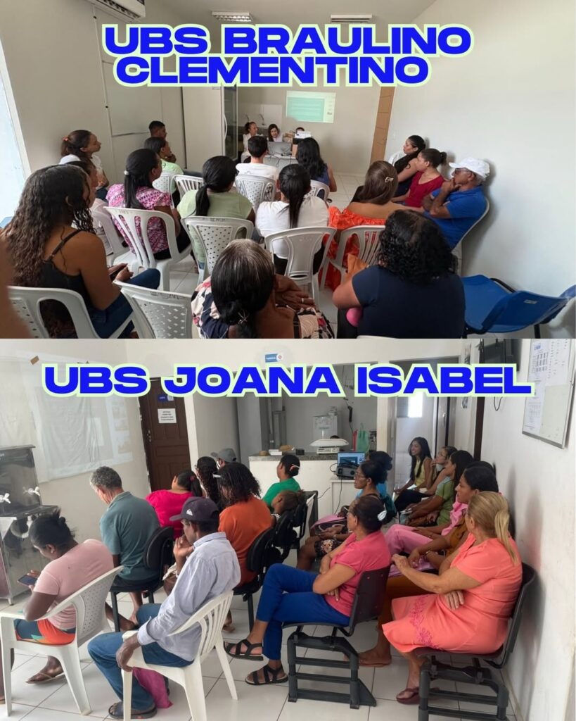 A palestra foi acompanhada simultaneamente nas UBS José Cledison e UBS Joana Isabel, contando com a participação das equipes da UBS Joana Isabel e da UBS Braulino Clementino, reforçando a integração entre os profissionais de saúde e o compromisso coletivo com a promoção da saúde mental no município.