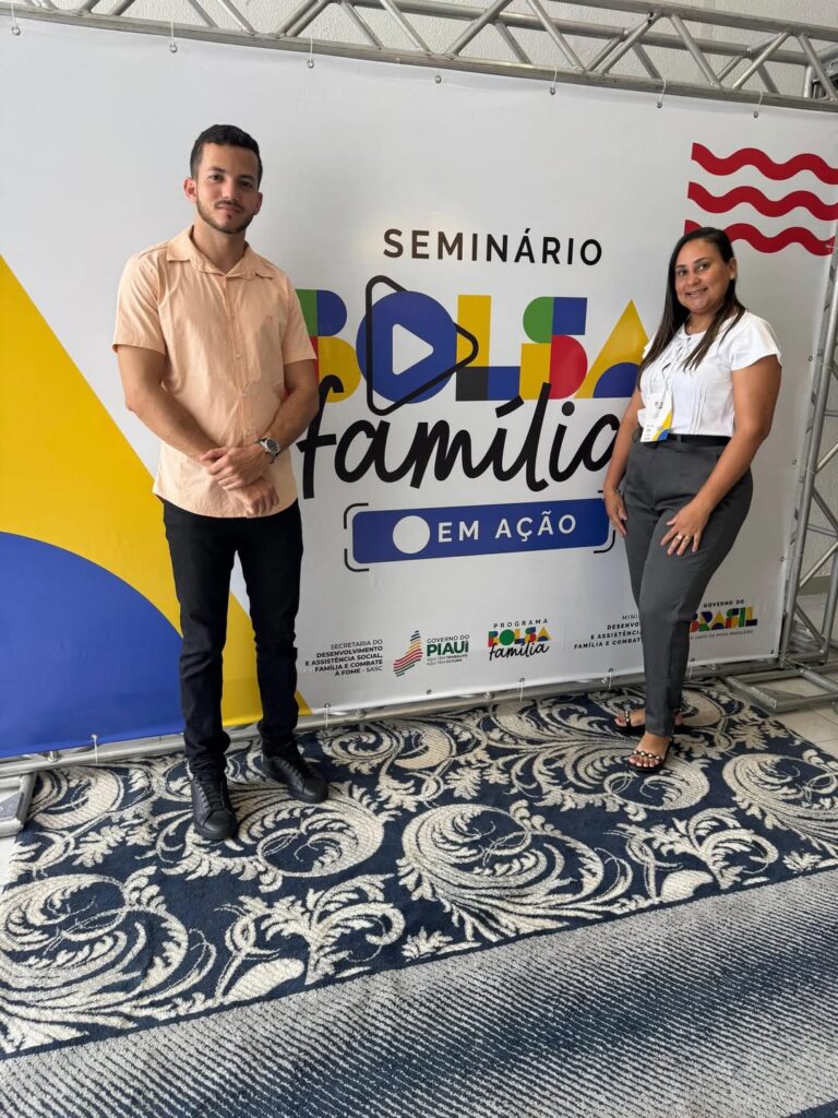 O Coordenador do Bolsa Família, Noé Rodrigues, e a Assistente Social do CRAS – Sede, Patrícia Leia, estão participando do Seminário Bolsa Família em Ação, realizado nos dias 26 e 27 de fevereiro, na cidade de Teresina.